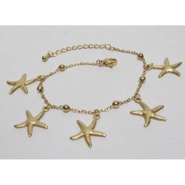 bijoux bracelet etoile mer doré acier. Bijoux en acier couleur mode du moment chez votre grossiste. Le bracelet acier femme est un bijou d'une qualité irreprochable et anti-allérgène. Vous êtes à la recherche de votre grossiste en ligne de bijoux femme, c'est sur Accessoiresengros.com que vous trouverez le plus grand choix de bijoux femme: Des bracelets, des bagues, des colliers en similicuir, des boucles d'oreilles ou encore des parrures vendus en gros pour les détaillants et revendeurs de bijoux.Accessoiresengros, votre grossiste bijoux en ligne à tous les moments.