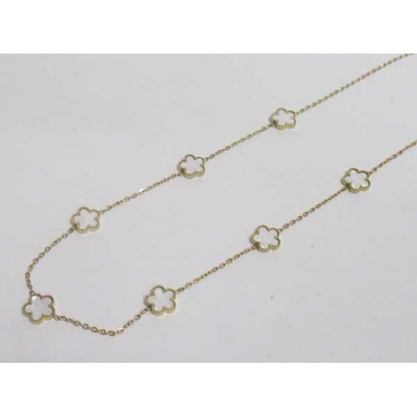 bijoux collier 7 trefles nacre en acier inoxydable. Vente de bijoux en acier de votre grossiste. Les bijoux acier pour femme sont irreprochable et anti-allérgène. Notre métier de grossiste de bijoux acier femme nous encourage à vous fournir des produits de haute qualité et un large choix pour satisfaire votre clientèle féminine. Vous êtes à la recherche de votre grossiste en ligne de bijoux femme, c'est sur Accessoiresengros.com que vous trouverez le plus grand choix de bijoux femme et homme: Des bracelets, des colliers, des bagues, des boucles d'oreilles ou encore des parrures vendus en gros pour les détaillants et revendeurs de bijoux.