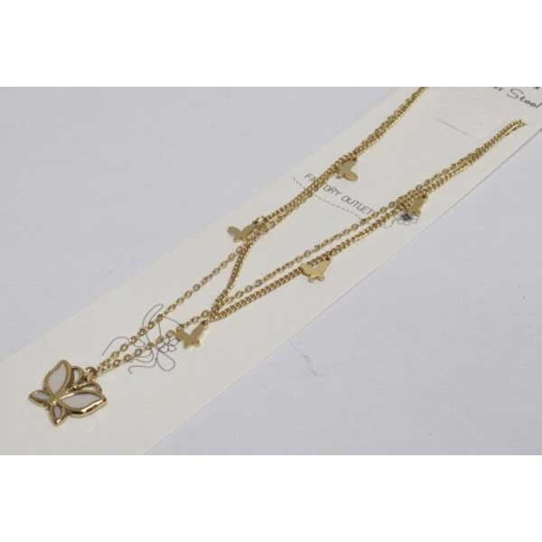 double chaîne papillon nacre acier doré pendant. Du bijoux acier à selectionner chez votre grossiste. Les bijoux acier pour femme sont irreprochable et anti-allérgène. Notre métier de grossiste de bijoux acier femme nous encourage à vous fournir des produits de haute qualité et un large choix pour satisfaire votre clientèle féminine. Vous êtes à la recherche de votre grossiste en ligne de bijoux femme, c'est sur Accessoiresengros.com que vous trouverez le plus grand choix de bijoux femme et homme: Des bracelets, des colliers, des bagues, des boucles d'oreilles ou encore des parrures vendus en gros pour les détaillants et revendeurs de bijoux.